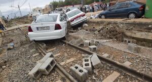 A continuación el alcalde, acompañado por el concejal de Infraestructuras, Lázaro Royo, ha visitado diversas zonas dañadas como el perímetro del acuartelamiento Daoiz y Velarde en el que se han desplomado hasta cuatro partes del muro que lo rodea. La rotura de los muros y el agua torrencial provocó el cierre de la CV-31 que discurre entre el acuartelamiento y la Feria de Muestras. Pero los daños más importantes se han registrado en la avenida del Testar y alrededores del estadio Gerardo Salvador, donde el primer edil ha estado conversando con varios vecinos. La fuerza del agua en las inmediaciones de los muros de la vía del tren ha terminado por inundar garajes y desplazar vehículos, quedando algunos de los mismos sobre la propia vía del tren. “En 30 años de servicio nunca había visto unos efectos tan catastróficos provocados por las lluvias en Paterna”, comentaba un miembro del gabinete técnico de urbanismo. Diversos vecinos afectados por las lluvias confirmaban que en el municipio “nunca se había visto algo así”. El firme de la avenida del Testar deberá ser reemplazado por completo, así como parte de las vías del tren de la Linea 1 de Metrovalencia que se han salido del trazado. El Estadio Gerardo Salvador era otro de los puntos que reflejaban hoy el efecto devastador de las lluvias. Tanto el césped como las oficinas, vestuarios o el bar han quedado completamente impracticables.